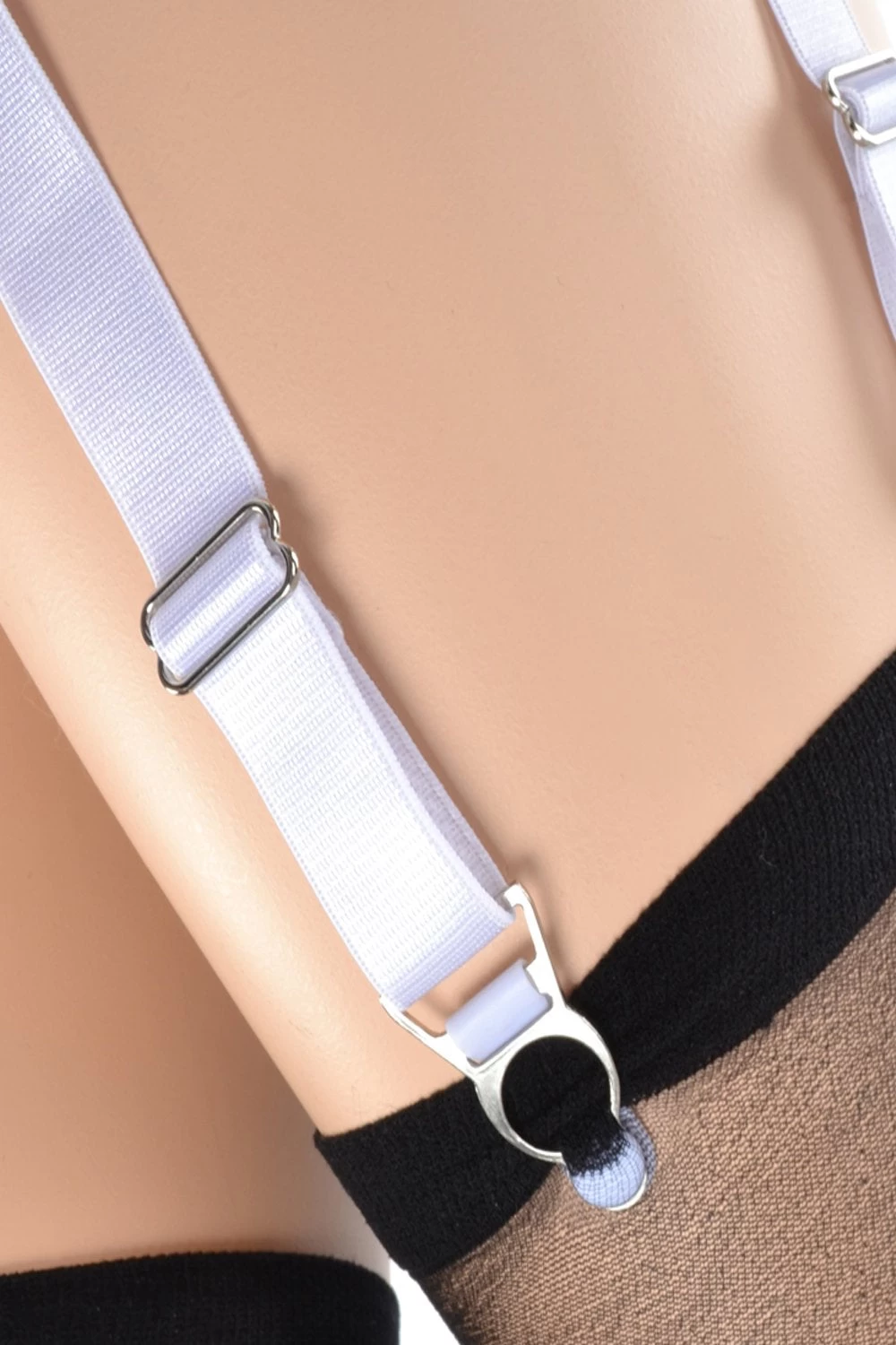 Our 6 white suspender clips are elasticated and adjustable. They are perfect to wear under your wedding gown with a white under bust to create a stunning hourglass figure.