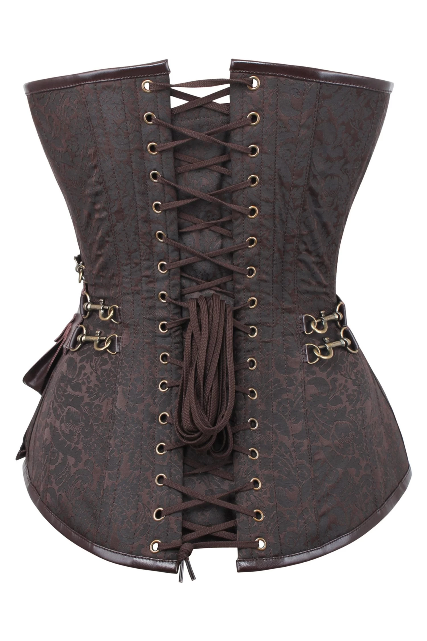 Ein praktisches und umwerfendes Steampunk-Design, das Sie immer wieder gerne tragen werden. Dieses Korsett mit traditionellem braunem Brokatdesign und Kunstleder-Details versinnbildlicht den Steampunk-Stil und wird garantiert Köpfe verdrehen. Das fantastische Design bietet außerdem eine Taillenreduzierung von bis zu 10cm!