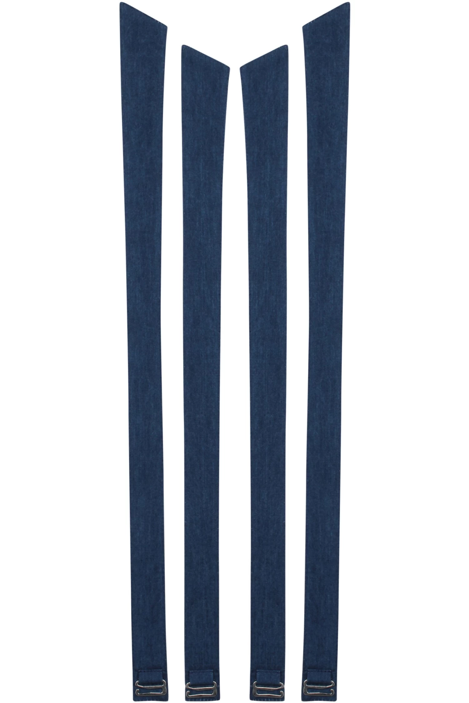 Delia – Ein Blaues Korsett Aus Chambray-Stoff Mit Spaghetti-Trägern