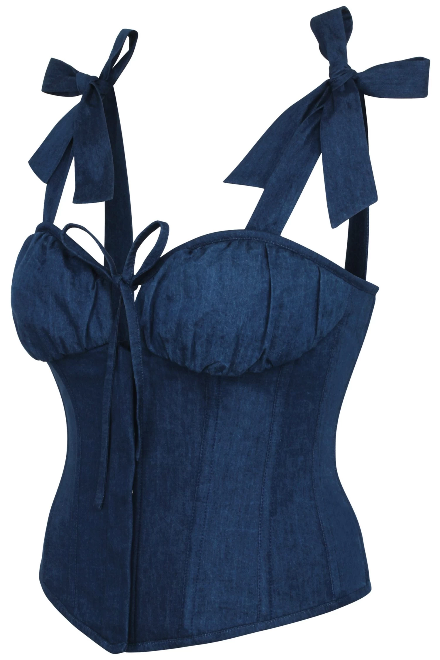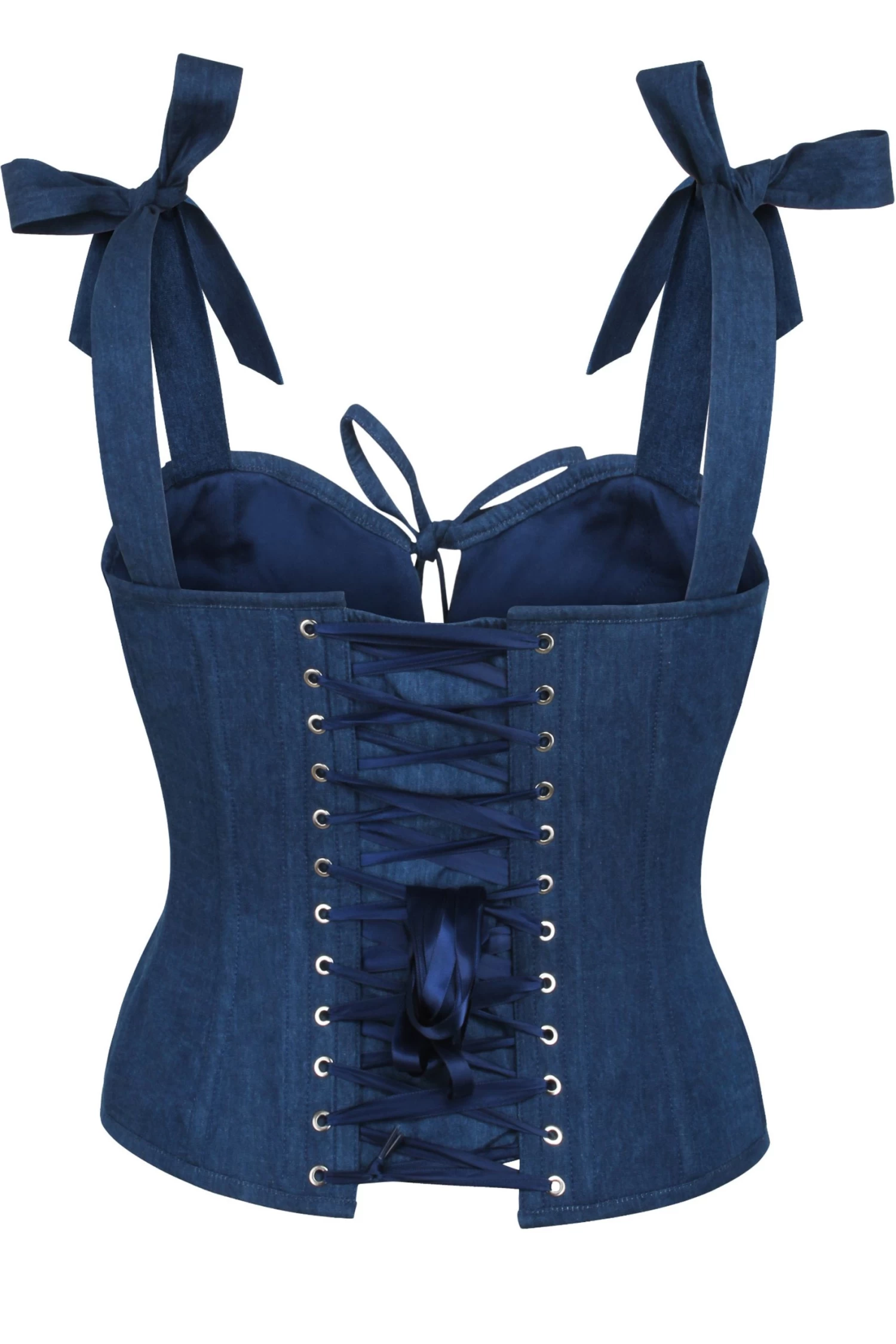 Jeder braucht ein Jeanshemd in seinem Kleiderschrank, und dies ist die Korsettversion davon! Ein leicht zu tragendes, jugendliches Korsett-Top mit verstellbaren Trägern.