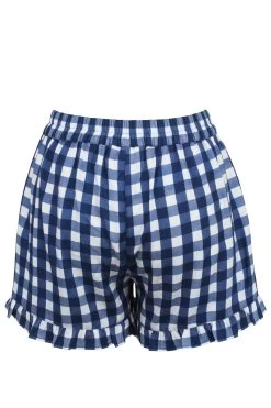 Daisy – Sommer-Shorts In Marineblau, Aus Viskose-Stoff, Mit Rüschensaum Und Gürtel Zum Selbstbinden