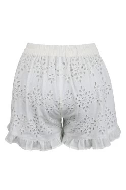 Daisy – Weiße „Broderie Anglaise“-Baumwoll-Shorts Mit Rüschenkante Und Selbstbindendem Gürtel