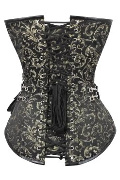 Überbrust-Korsett Aus Schwarzem Satin Mit Bestickten Stäbchenkanälen