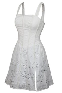 Veronica – Ein Weißes Baumwoll-Korsettkleid Mit „Broderie Anglaise“-Muster Und Trägern