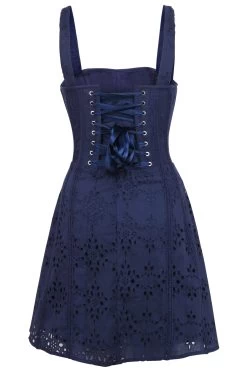 Veronica – Ein Marinefarbenes Baumwoll-Korsettkleid Mit „Broderie Anglaise“-Muster Und Trägern