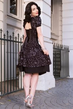 Gladiolus – Ein Schwarzes Leinen-Korsettkleid Mit Puffärmeln