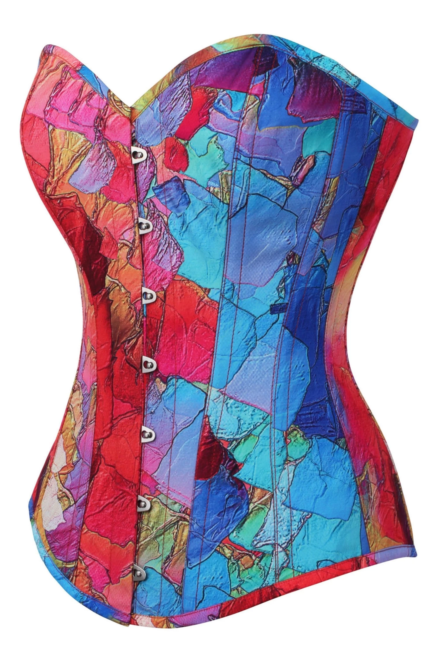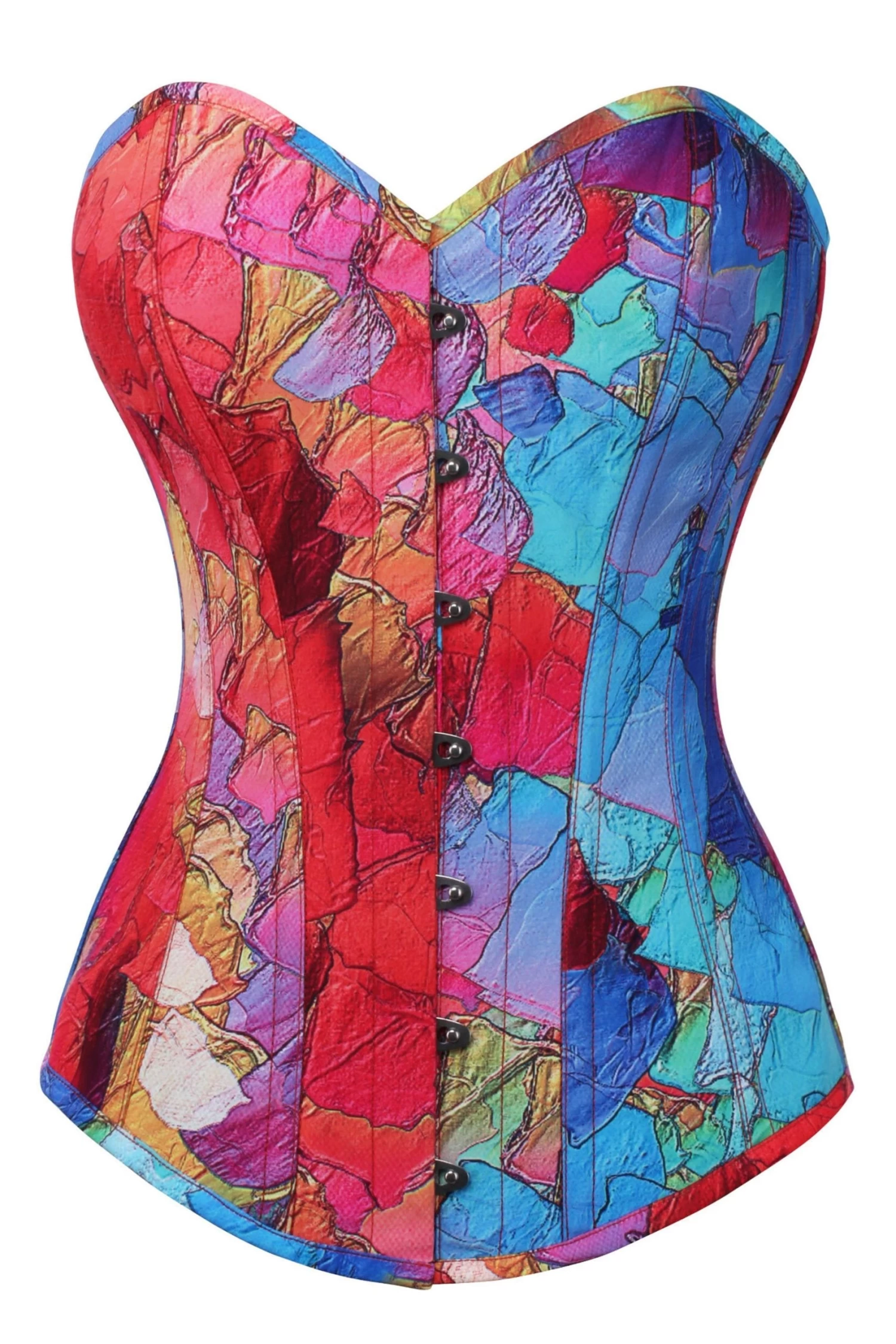Dieses charmante kaleidoskopische Longline Überbrust-Korsett wurde speziell für unsere Korsettliebhaber über 170cm entworfen und wird mit Leichtigkeit einen für jeden Anlass perfekten und auffallenden Look kreieren. Mit einer Taillenreduzierung von bis zu 10cm glättet und formt dieses Design Ihre Figur und verleiht Ihnen eine ikonische Sanduhr-Silhouette, die garantiert Köpfe verdrehen wird. Für ein sexy, gewagtes und beneidenswert einmaliges Abendoutfit kombinieren Sie es mit einer Lederhose und Stöckelschuhen.
