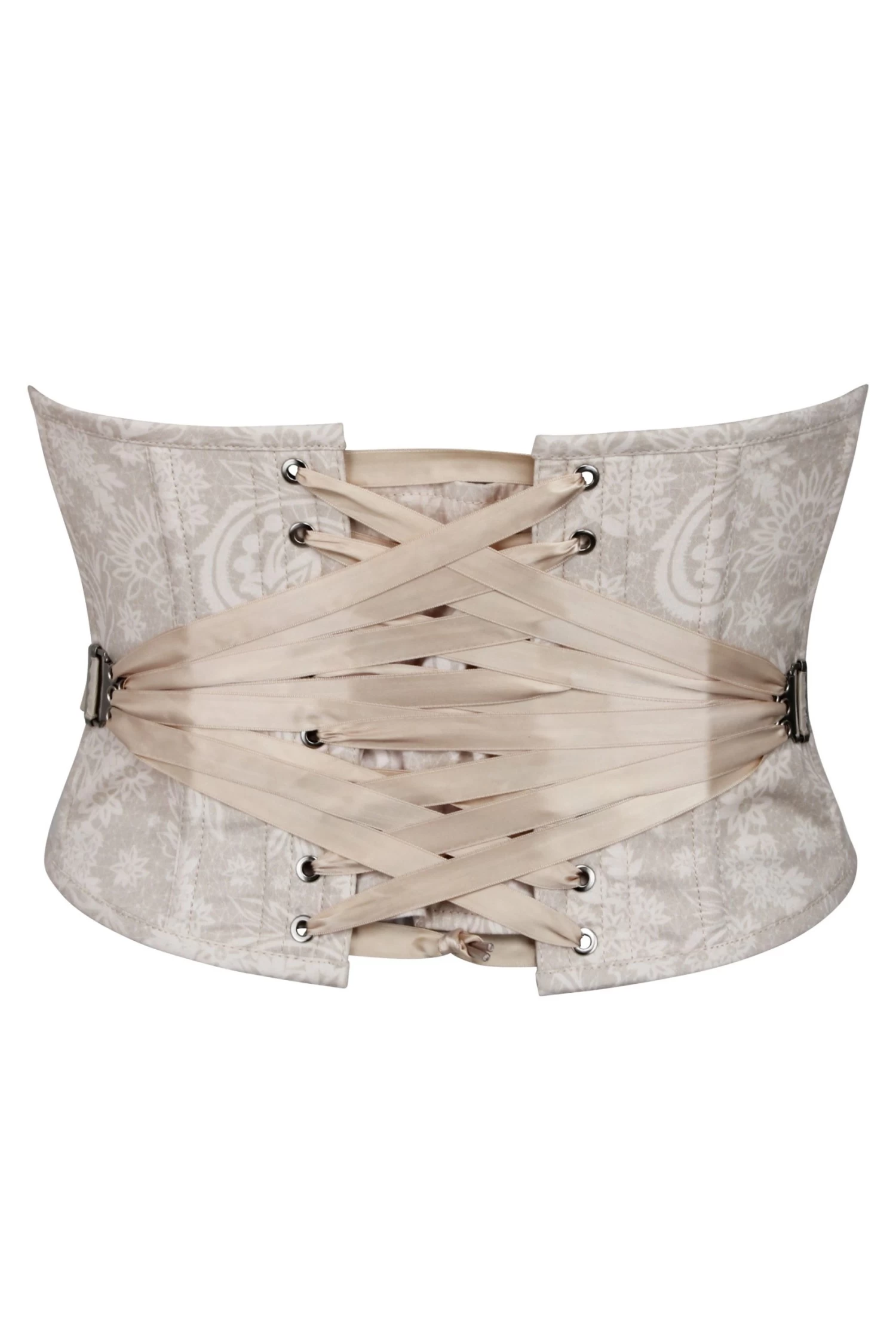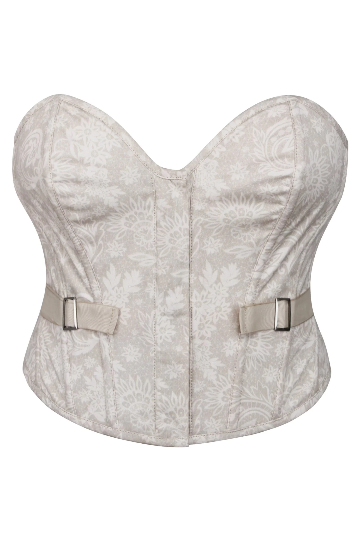 Ein moderner und neutraler Spitzendruck ist das i-Tüpfelchen auf diesem trendigen bauchfreien Korsett mit herzförmigem Ausschnitt.