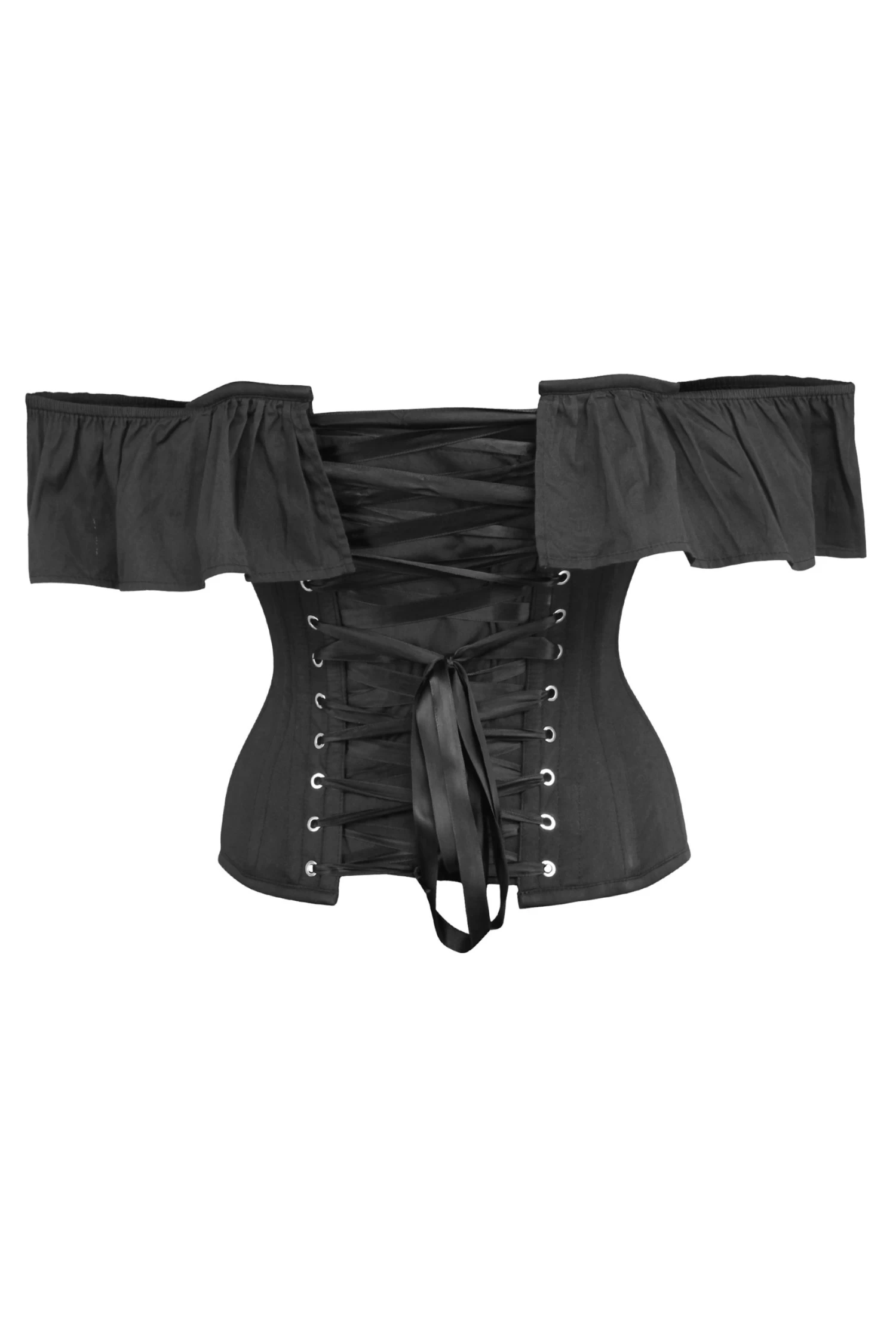 Ein klassisches Korsett-Top. Wunderschöne tiefe Rüschen sorgen für Dramatik und bedecken die Oberseite der Arme. Dieses Korsett verfügt über BH-Schlaufen, so dass Sie ganz einfach unseren „Dahlia“-Schulterriemen einhaken können, um zusätzlichen Halt und einen ganz neuen Look zu erhalten.