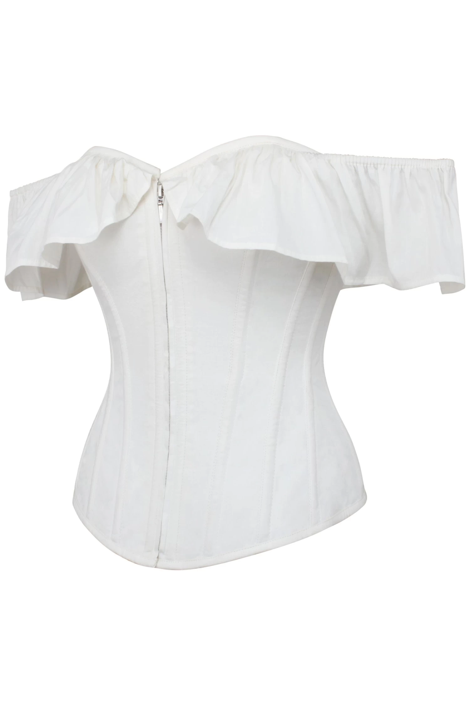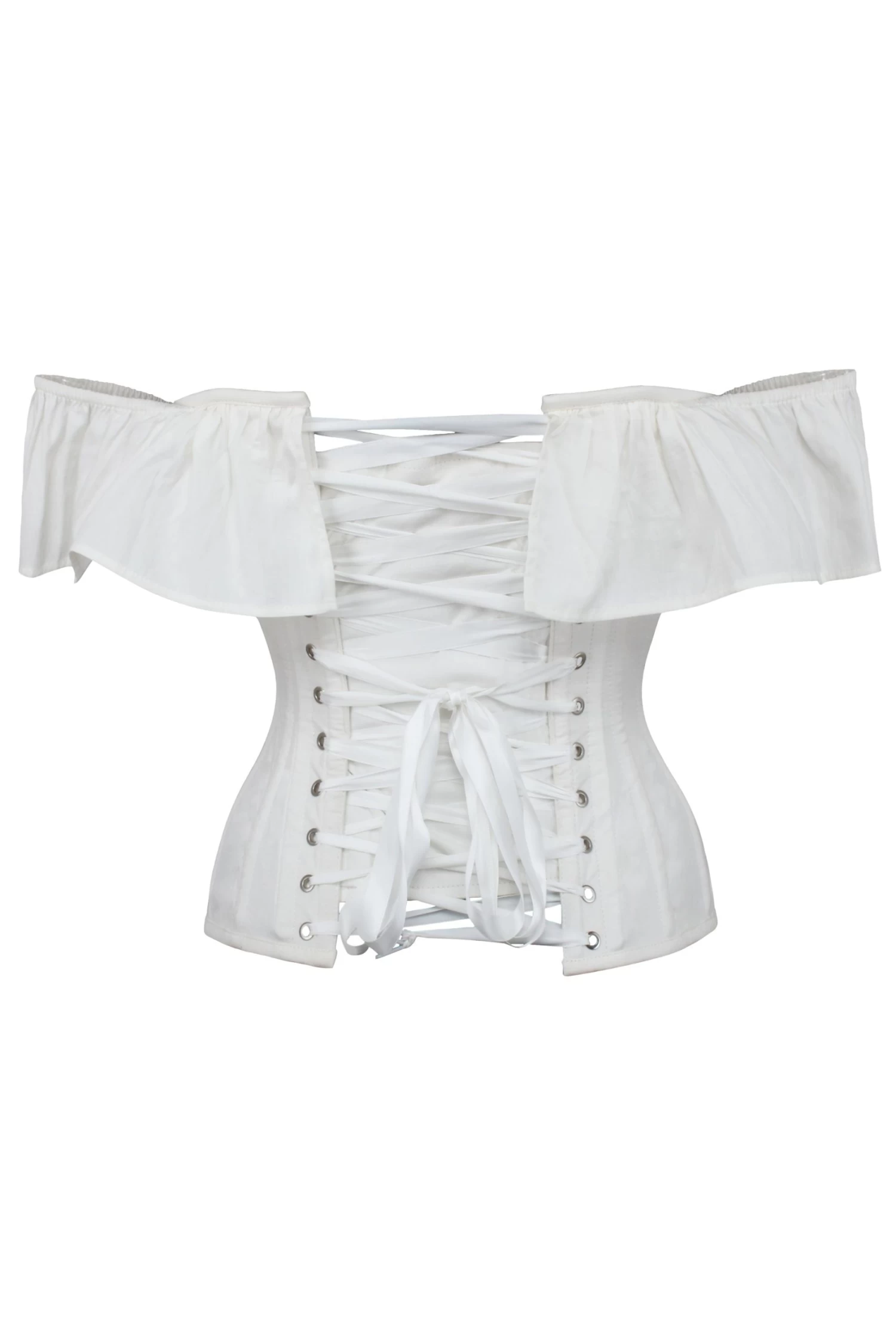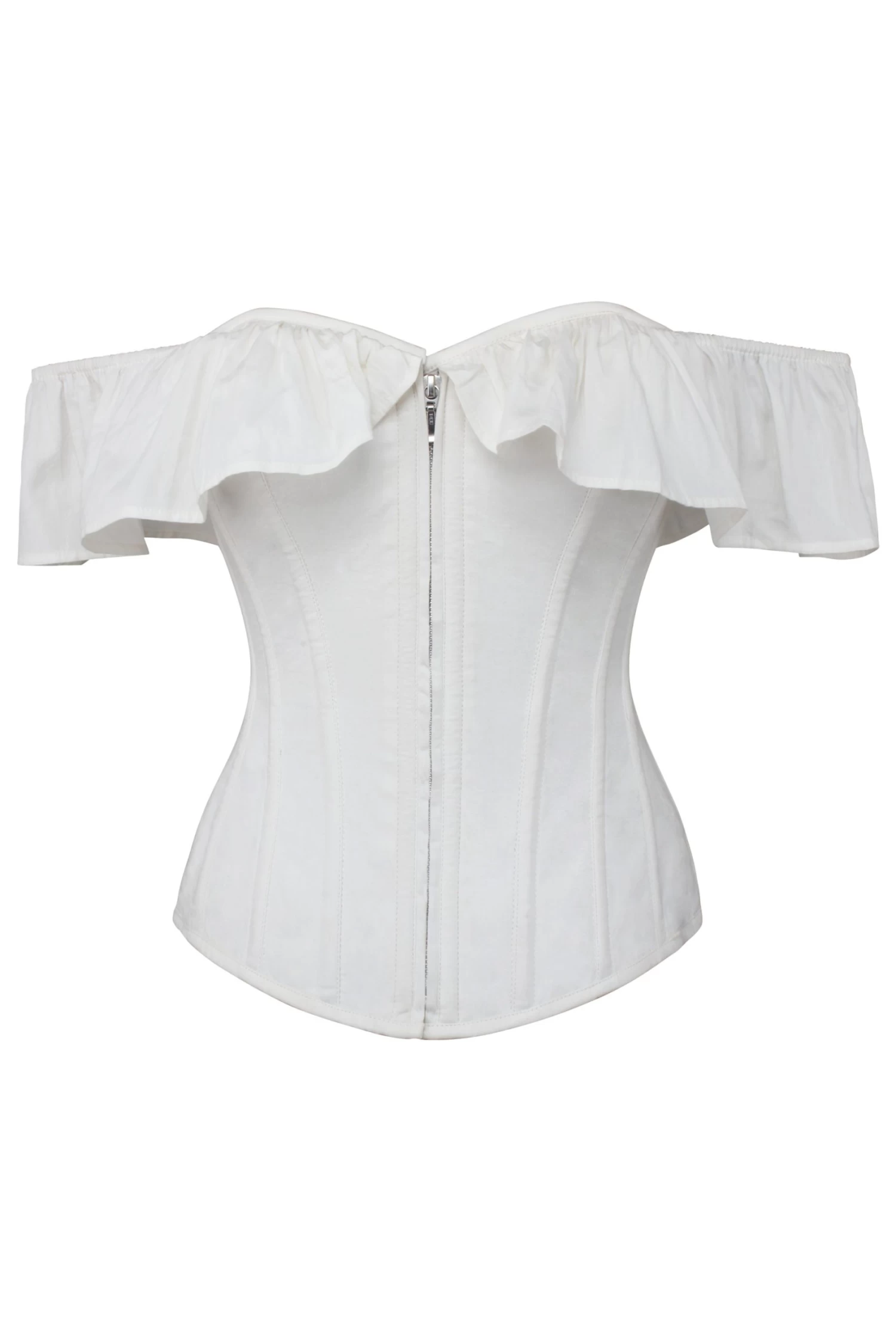Wir alle brauchen ein klassisches weißes T-Shirt in unserem Kleiderschrank, und wir von „Corset Story“ sind der Meinung, dass Sie auch ein klassisches weißes Korsett-Top benötigen! Eine schöne und einfache weiße Bardot-Rüsche verleiht diesem Überbrustkorsett seinen ganz besonderen Auftritt. Mit seinem hübschen Band, der voll verstellbaren Schnürung und einem verdeckten Frontreißverschluss sorgt es dafür, dass Sie mit Leichtigkeit die perfekte Passform erreichen.