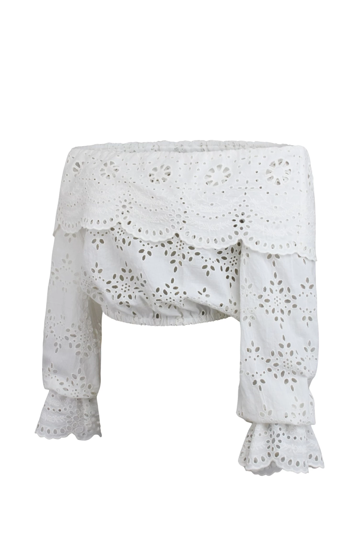 Ein langärmeliges, tailliertes Oberteil mit tiefem Bardot-Ausschnitt, das zu unseren Wespentaillenkorsetten und Unterbrustkorsetten getragen werden kann.