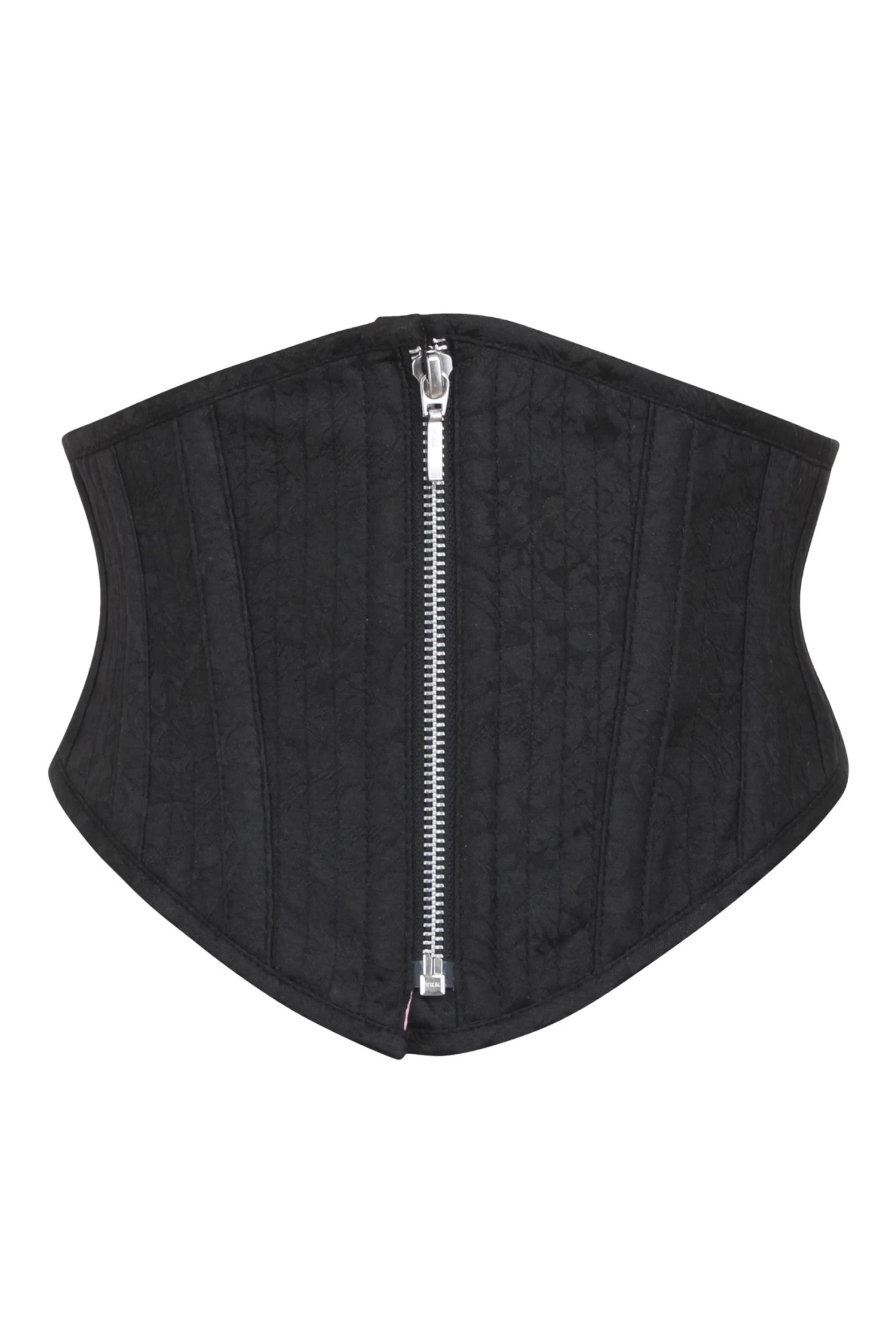 Wagen Sie es, anders zu sein mit dem Waspie-Korsett mit Reißverschluss vorne. Steigern Sie sofort Ihr Selbstvertrauen und sehen Sie umwerfend aus mit diesem wunderschönen schwarzen Brokatkorsett, das auf Langlebigkeit ausgelegt ist. Zeigen Sie Ihre Kurven stilvoll, während Sie sich wohl und sicher fühlen, da Sie wissen, dass dieses Korsett praktisch, strapazierfähig und langlebig ist. Bringen Sie heute mit dem Waspie-Korsett mit Reißverschluss vorne das Beste aus Ihnen heraus.