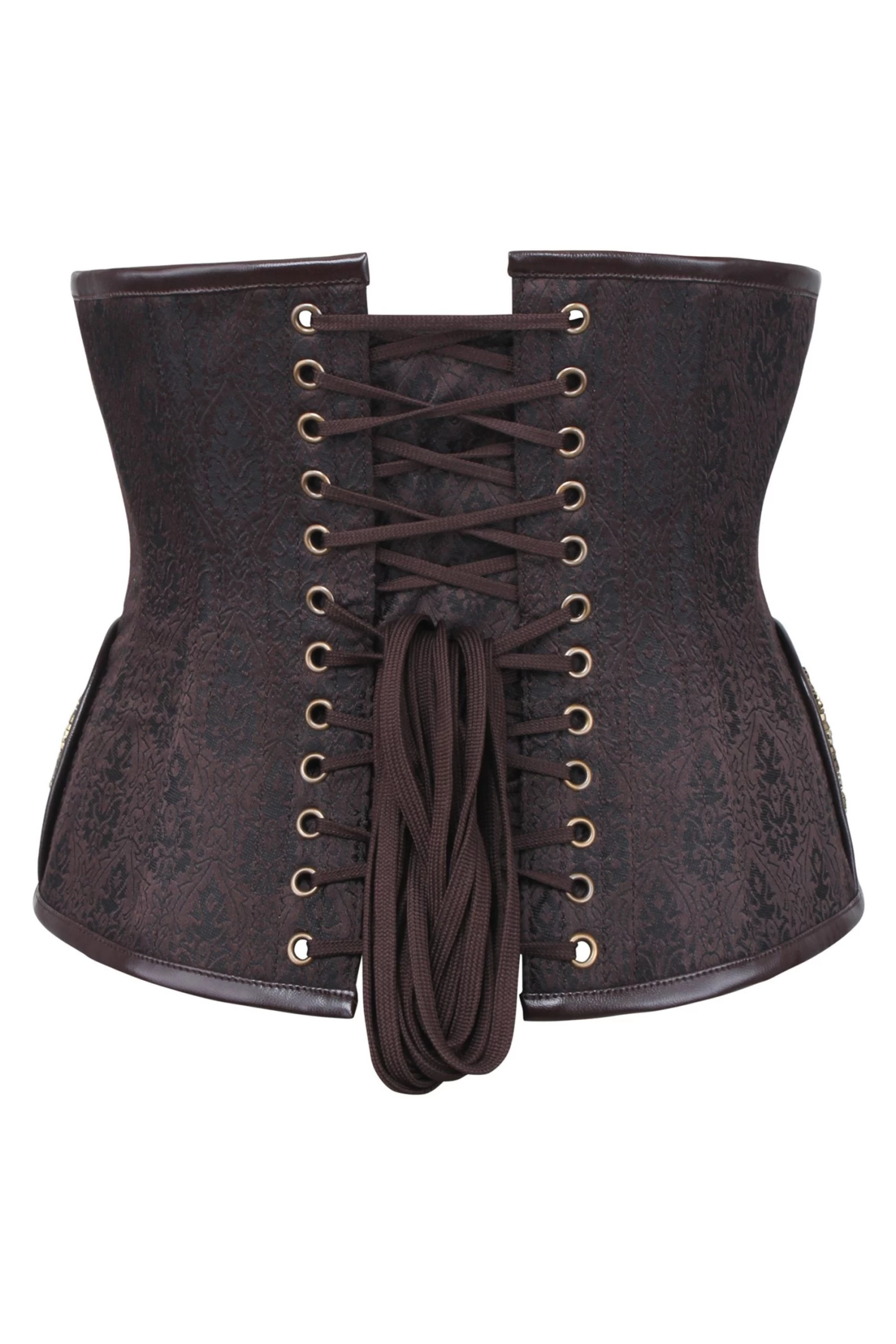 - Designmerkmale des Korsetts: Brokatmuster, Steampunk-Hakenverschlüsse, Kunstlederbindung, Nietendetails, Hüftpanel