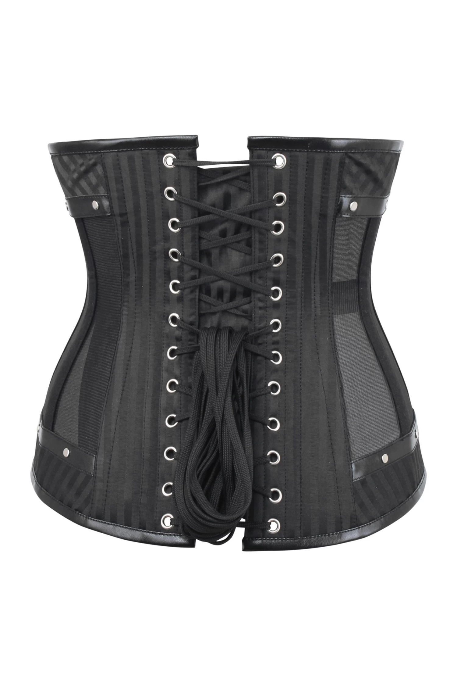 - Corset Features: Steel Busk,Mesh Panels,Cord Lacing
