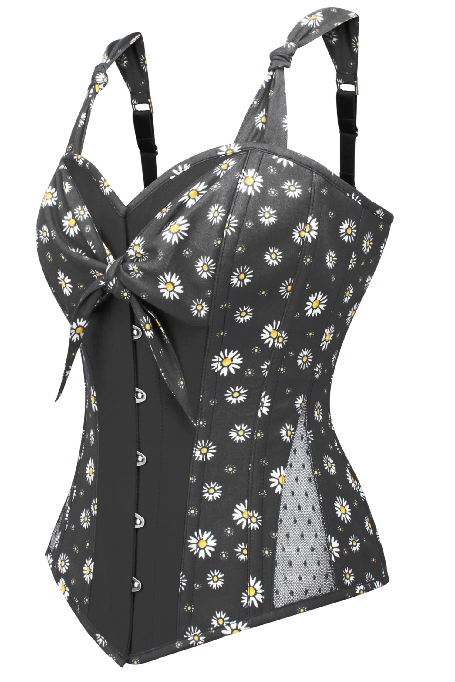 - Merkmale des Korsett-Designs: Vintage-Gänseblümchen-Print, Krawattenschlei Verstellbare Träger